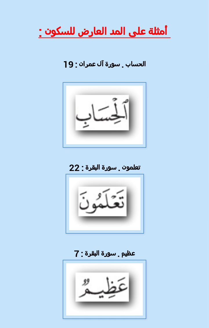 اليوم ولله الحمد سنختم باب المُدود بالمد العارض للسكون ومد اللين.