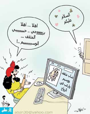 الزوجه ماكملت الفطاير جت للكمبيوتر ومعه خشبتهن |
