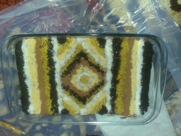 المقاديـــر : ١قشطه 1ظرف دريم ويب ٤م ك كاكاو ٨أصابع كتكات فنجال سكر وأيضا ظرف واحدكريمه بسكوت شاي الطريقـــة : نضع في الخلاط ما يلي ١قشطه - ١ظرف دريم ويب - ٤ م ك كاكاو - ٨أصابع كتكات - فنجال سكر تخلط المقادير بالخلاط ويغمس بسكويت شايبحليب سائل أي نوع إلى تحبين ويصف بالصينية ثم توضع نصفالخلطة وتوضع طبقه ثانيه من البسكويت وطبقه أخرى من ألخلطه .. ثم نطحن اوريو منزوع الكريمة و بسكوت شايمطحون و فستق مجروش و جوزهند وكاكاو وهذا الشكل النهائي ملف مرفق 9839 |