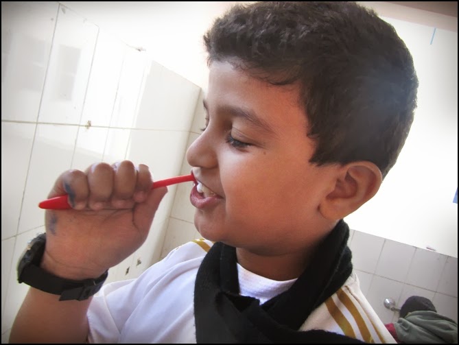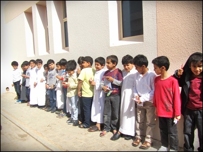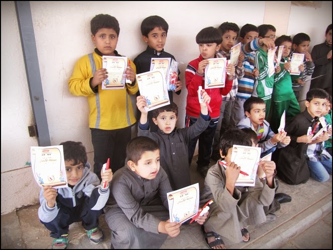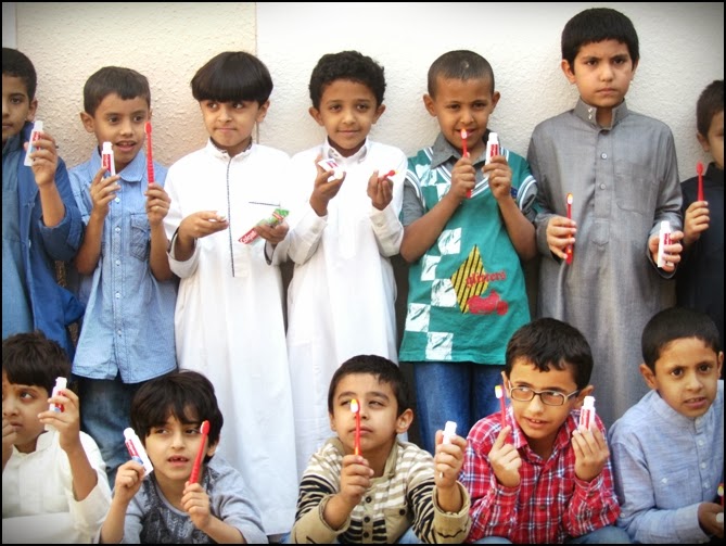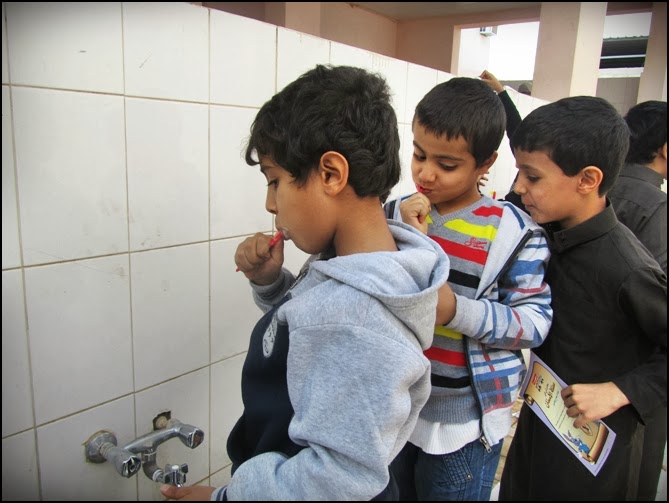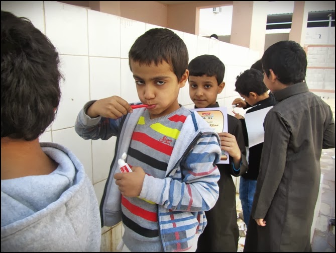 بالتعاون مع إدارة الصحة المدرسية والذي شمل قرابة 90 طالب من طلبة المدرسة واستمر ثلاثة أسابيع متتالية حيث وزعت حقيبة تحوي على مطوية توعوية و فرشاة ومعجون معدة خصيصا للأطفال وشرح كيفية طريقة استخدامها من قبل رائد النشاط حسب توجيهات الصحة المدرسية وتم استخدام الفرشة والمعجون كل يوم بعد الفسحة الثانية للطلاب وفي ختام البرنامج وزع مدير المدرسة المربي الفاضل خالد الخريف شهادات الشكر والتقدير على جميع الطلبة المشاركين في البرنامج