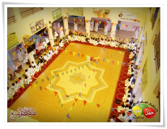 كان موعد لن ينساه طلابنا حيث حفل المعايدة واستقبال الـــعام الدراسي الجديد بدء بالقرآن الكريم ثم كلمة لمدير المدرسة الأستاذ الفاضل خـــالد بن عبد الرحمن الخريف بعدهـا قام طلاب المدرسة بالسلام على معلميهم في جوء أسري وتربوي رائع لينطلق البرنامج الثقافي والألعاب الحركية والمسابقات الذهنية واستمع طلابنا إلى حناجر ذهبية صدعت بأعذب الأناشيد والقصائد ثم تناول أبناءنا وجبة الغداء التي أعدتها المدرسة ليستلم أبنائنا الكتب الدراسية والجدول الدراسي.