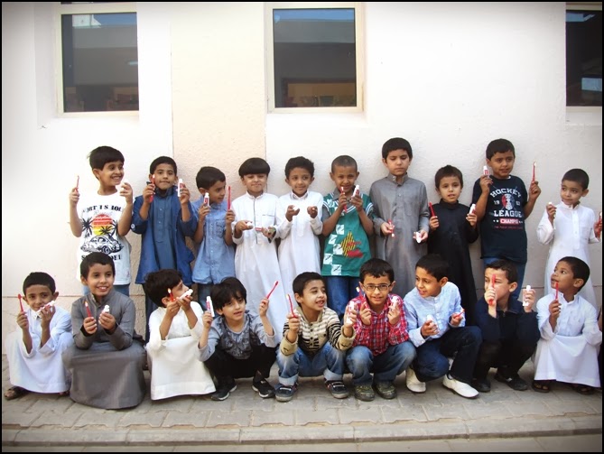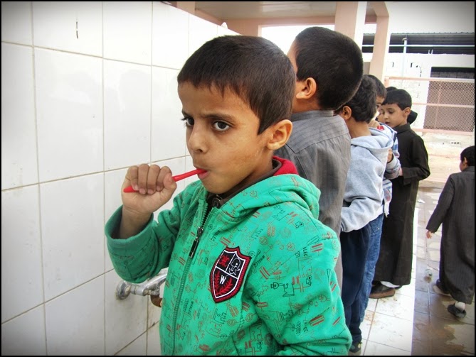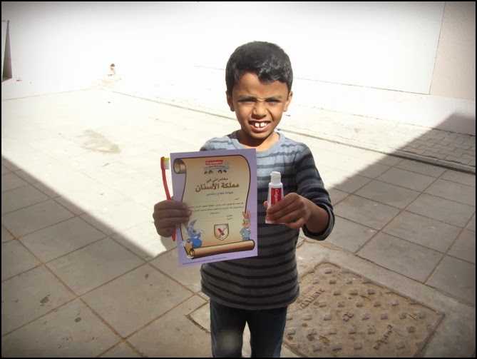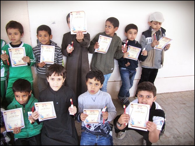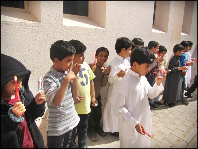 بالتعاون مع إدارة الصحة المدرسية والذي شمل قرابة 90 طالب من طلبة المدرسة واستمر ثلاثة أسابيع متتالية حيث وزعت حقيبة تحوي على مطوية توعوية و فرشاة ومعجون معدة خصيصا للأطفال وشرح كيفية طريقة استخدامها من قبل رائد النشاط حسب توجيهات الصحة المدرسية وتم استخدام الفرشة والمعجون كل يوم بعد الفسحة الثانية للطلاب وفي ختام البرنامج وزع مدير المدرسة المربي الفاضل خالد الخريف شهادات الشكر والتقدير على جميع الطلبة المشاركين في البرنامج